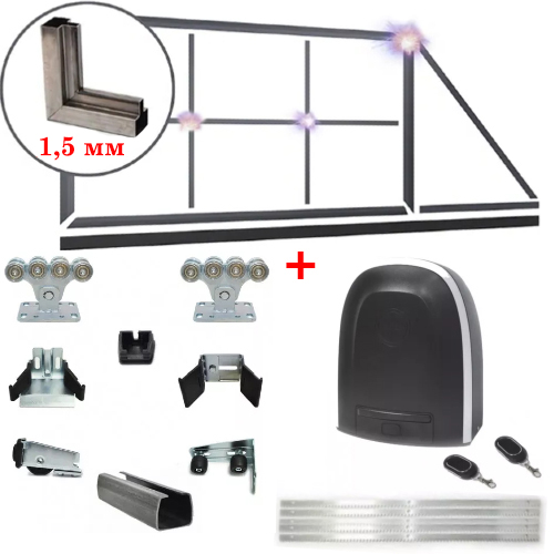 Комплект фурнитуры с идеальным по качеству направляющим профилем и усиленными подшипниками. А автоматика Alutech RTO 500 уже давно зарекомендовала себя на рынке России.