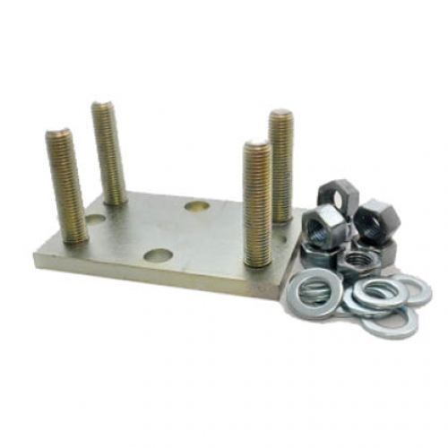 Готовые площадки со шпильками под роликовые опоры для откатных ворот. Площадки привариваются к фундаменту для откатных ворот, а сами ролики для откатных ворот крепятся к площадке при помощи шпилек и гаек. Это немного дороже, чем приварить опоры непосредственно к швеллеру, но избавляет Вас от ненужной возни и затрат времени, т.к. добиться точного выставления по одной прямой роликовых опор (если ролики будут стоять не по прямой, то будут сильно изнашиваться) без регулировочных подставок очень сложно.
